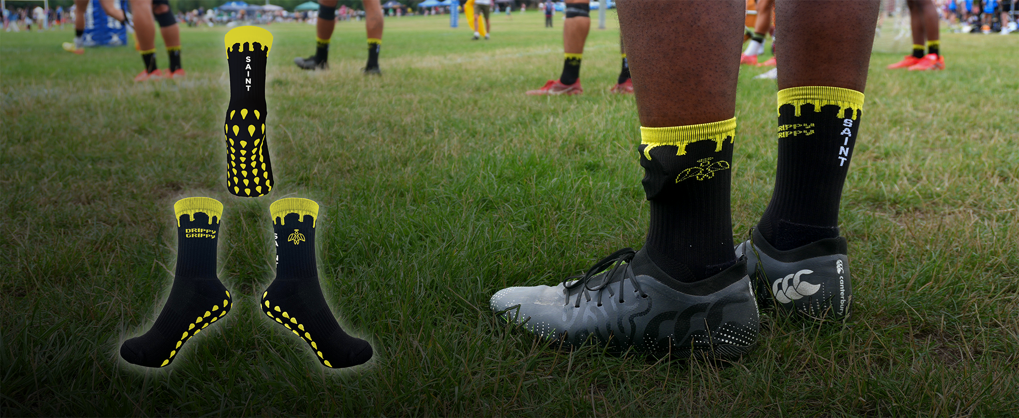 Drippy Grippy socks are designed for a locked-in, athletic fit built for competitive sport.